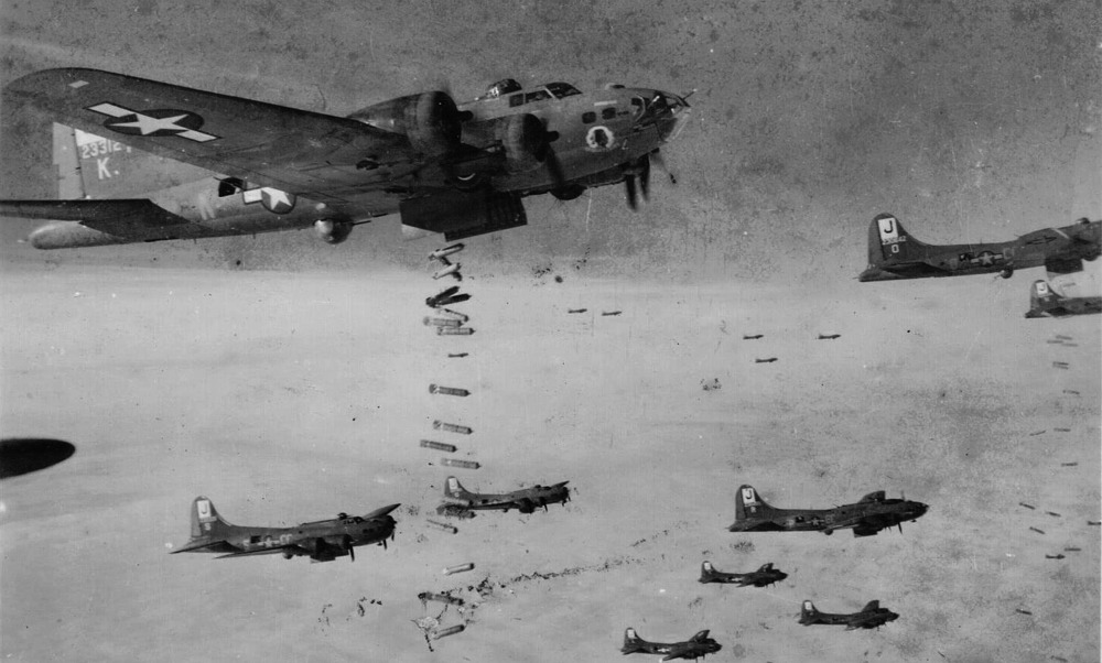 Additional modifications included: from B-17F-30-BO onward, a gun was added atop the radio compartment, firing upward from a transparent hatch; from B-17F-30-BO, F-20-DL, and F-20-VE, external bomb racks were fitted under the inner wings for two 4,000-pound bombs, although these were removed starting with B-17F-95-BO due to range penalties and maneuver limitations; the Bendix remotely-operated chin turret began appearing with B-17F-75-DL to further bolster frontal defense; and a nose astrodome was introduced beginning with B-17F-45-BO, F-15-DL, and F-15-VE blocks.