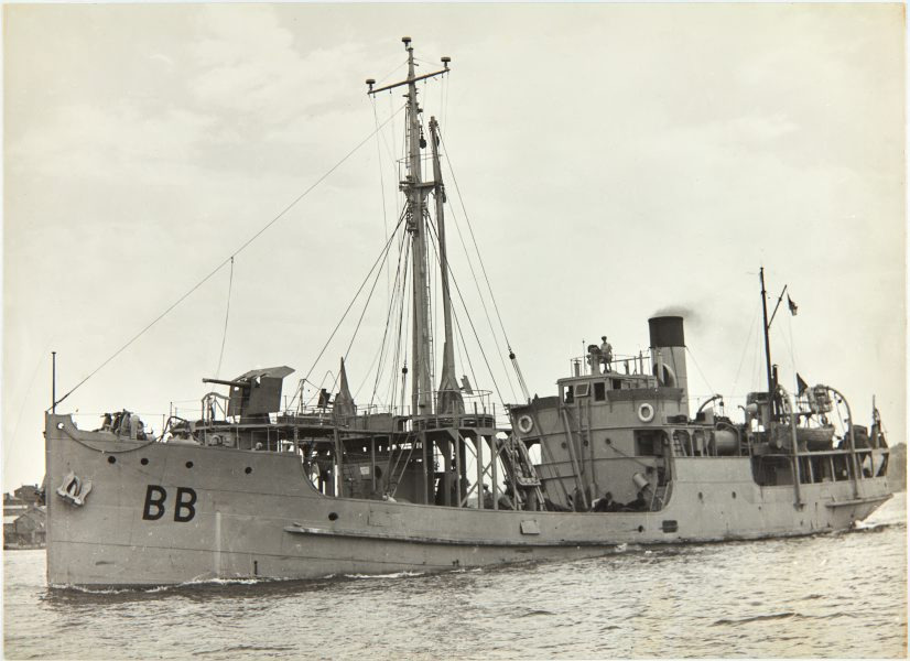 For her new life she would undergo a large refit, having a large mast added amidships, replacing a smaller deck crane, saving room on the deck itself, a smaller mast for communication equipment was also fitted aft. She also was given an armament of a single 12pdr forward, two .303 Vickers guns amidships, and a singe DC rail, fitted with four charges. This would finish and she would commission on the 28th of May 1941.