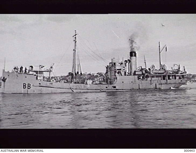 In early September 1945, she would join an Allied force bound for Koepang, in Timor, to enforce Japanese surrender. Other than this occasion, she would continue the boring task of transporting equipment to North Australia.