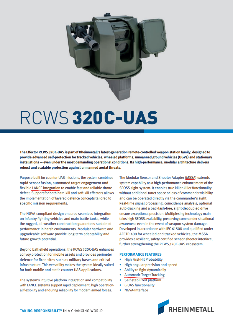 It also says LANCE integration on the PDF for the RCWS 320C-UAS.