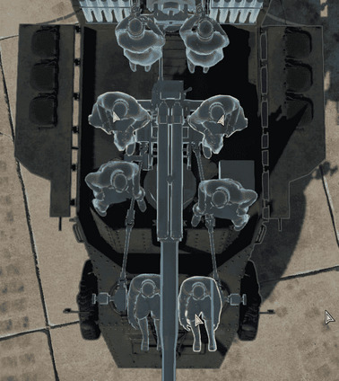 1): assenza di ben 3 membri di equipaggio, due al cannone e un altro a fianco all’autista (presumibilmente operatore radio).