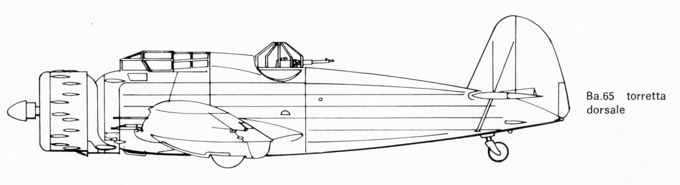 The engine also remained the same as the classic Ba.65, as it was equipped with a 725 hp Isotta Fraschini K.14 engine, which by adding the additional defensive weapon, allowed the aircraft to reach a maximum speed of 410 km/h.