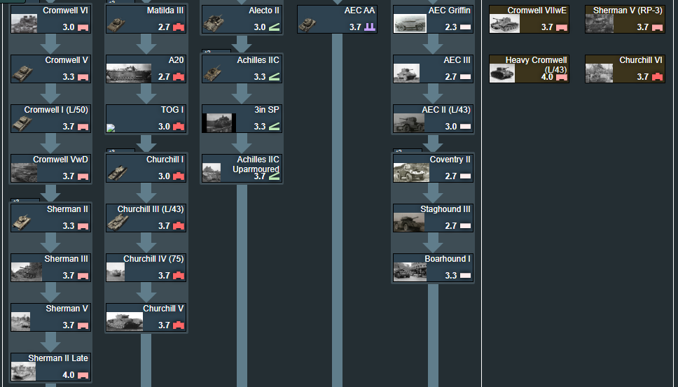 Does anyone else find the area around 3.7 to 4.3 in the British tree to be a bit of a mess/threadbare? (Not counting premium/market vehicles)