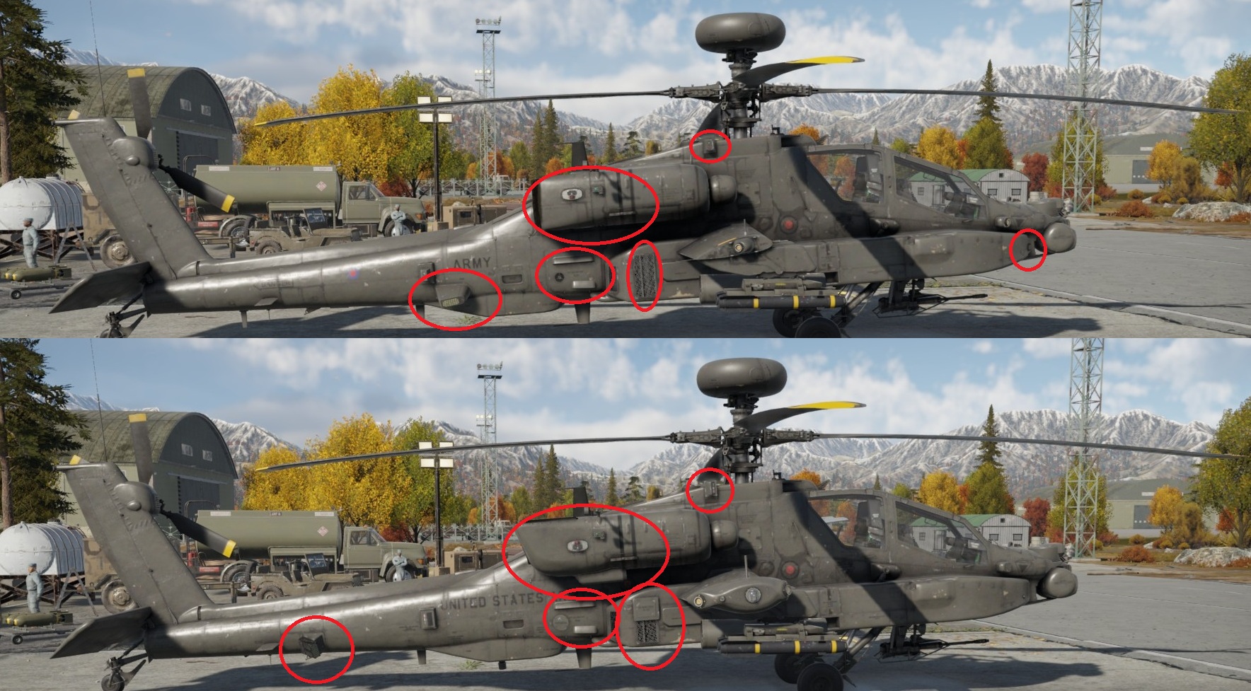 Yes. It’s really confusing. The existing issues regarding the AH-64E submitted to the UK, which should have DIRCM, have not been approved. But look at these photos. Are the areas circled in red infrared countermeasure devices? If not, what are they?