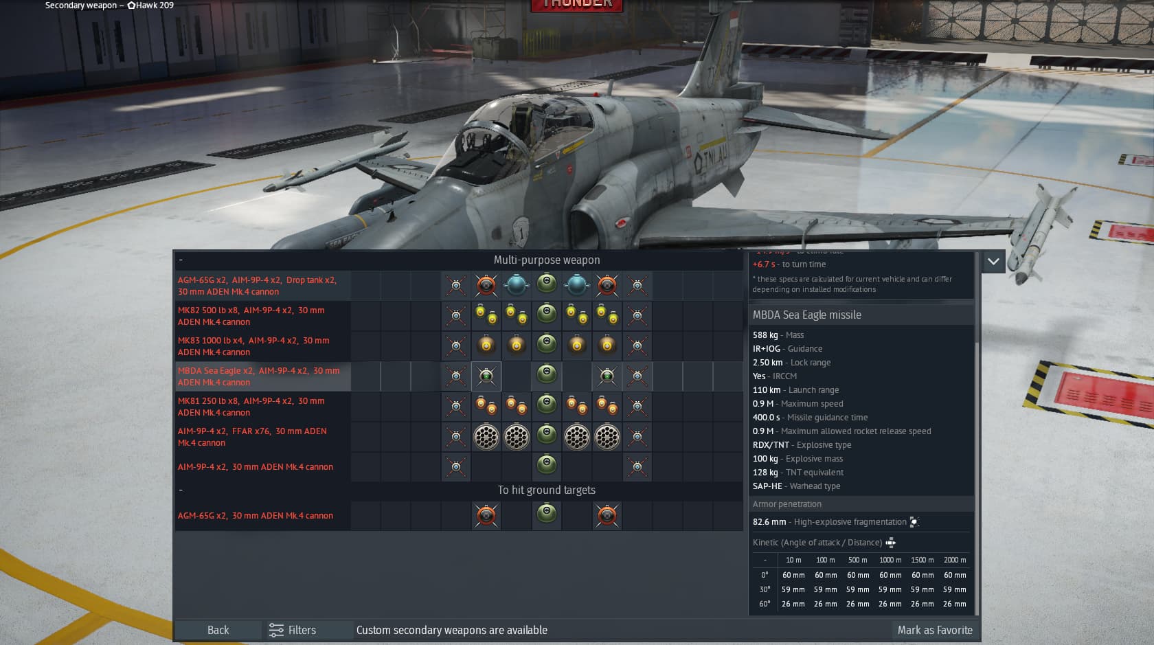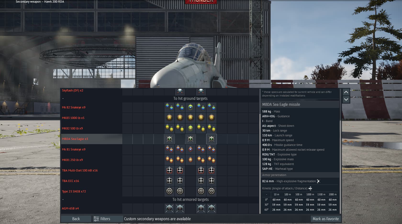 Hawk 200 and 209 have been given a versions of Sea Eagle with a fake IR/IIR seeker (instead of the ARH guidance version used on Tornado, Bucc, Hawk RDA etc.)