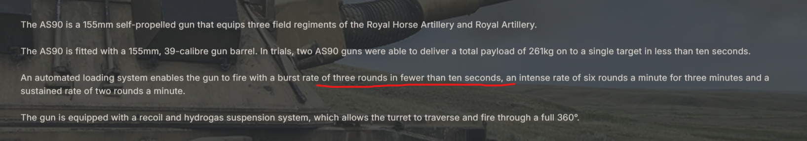 According the British Army website the AS-90 can achieve 3 rounds in 10 seconds, so hopefully we see a 5 second reload ingame for the AS-90 at least.