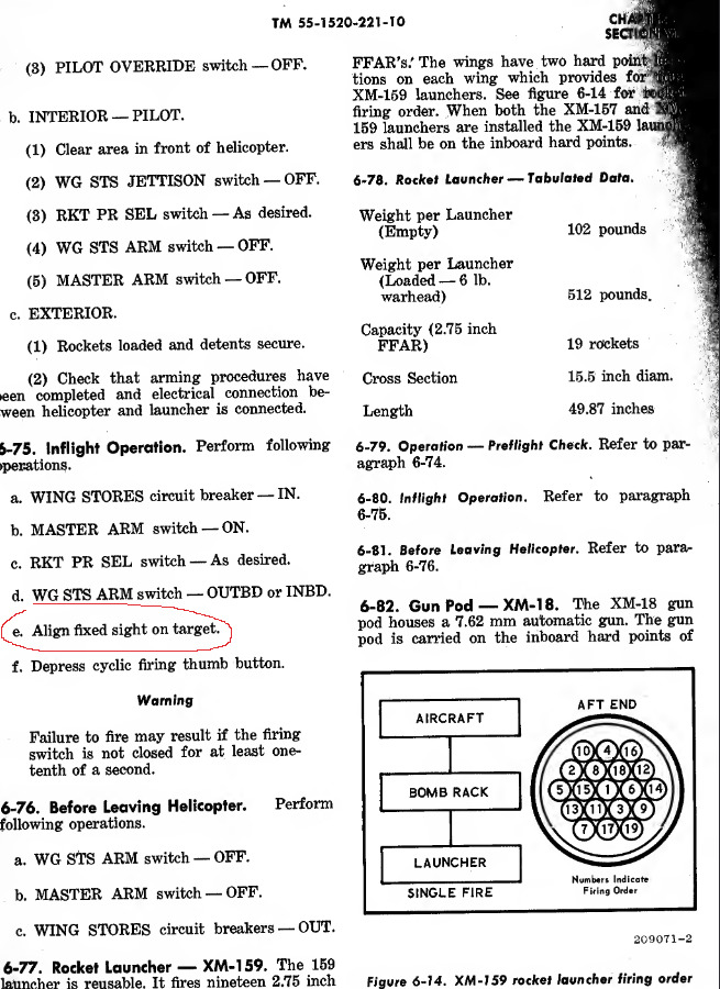 It also states “The pilot is provided with a fixed illuminated reticle sight for firing the TAT-102A turret in the stowed position and podded guns and rockets on the wing stores”. At a minimum, there should be a sight picture for the rockets alone (realistically, the gunsight is manually changed anyway for range for impact and angle but WT isn’t that modeled toward sight controls).