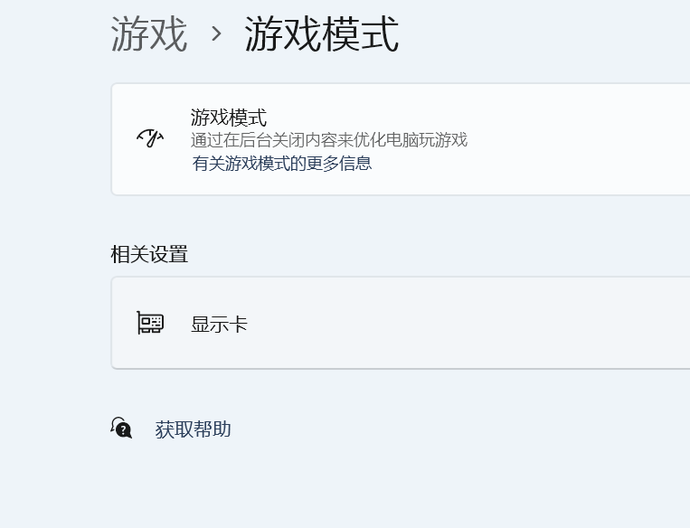 点击 游戏 → 游戏模式 同样可以找到“显示卡”设置选项界面