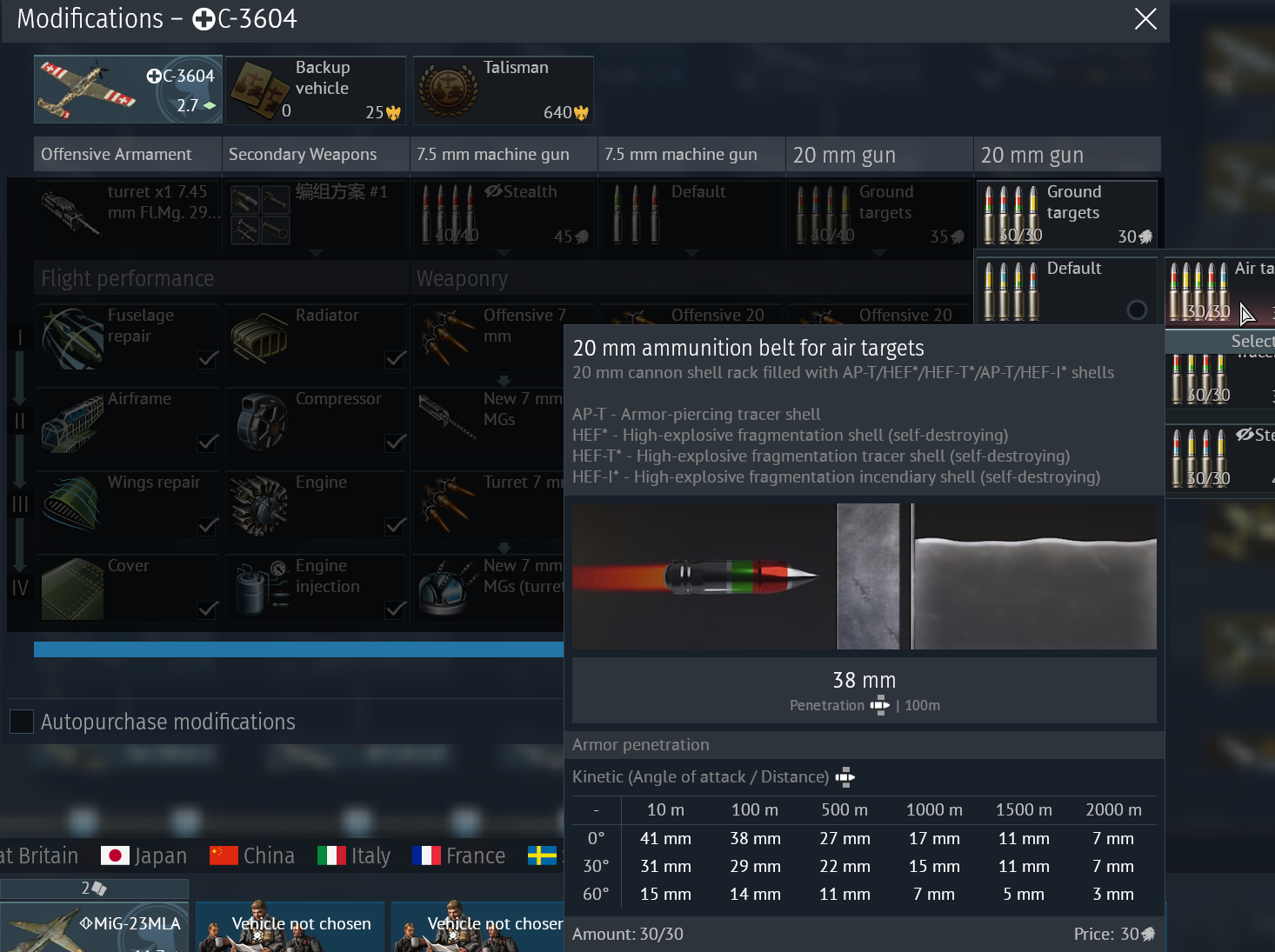 After Gaijin adds new SP cost for CAS in GRB, C-3604 needs to pay additional SP for all belts, I’m sure not only C-3604 suffers from this kind of situation, but it is pretty annoying due to one of its 20mm cannon has 41mm penetration AP rounds. Is there any problem in providing a pure HE/SAP round for it? Even though Gaijin believes it is not a BUG.