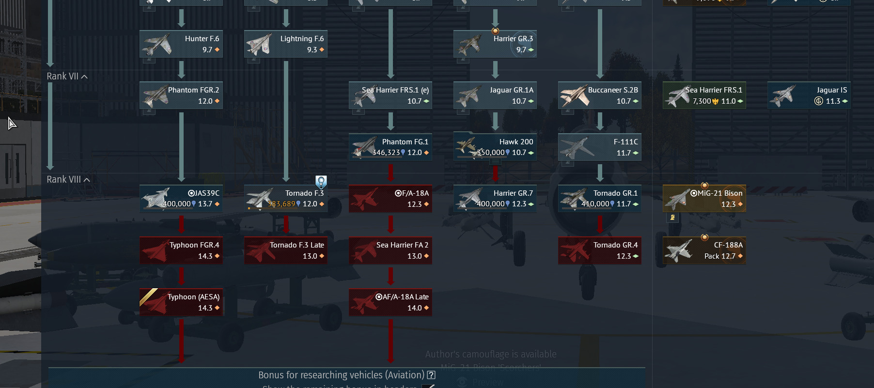 The F-4JUNK looks good these days with 12.3 BR being de-facto 13.3 with Su-30MK premiums. 8x PL-12, 4x PL-8B. Wished I bought it before it went off sale; sadly, I only have the Bison. Looking to get the 13.0 Tornado now for tier 9 grind. 4x 9M 4x AMRAAM seems awesome.