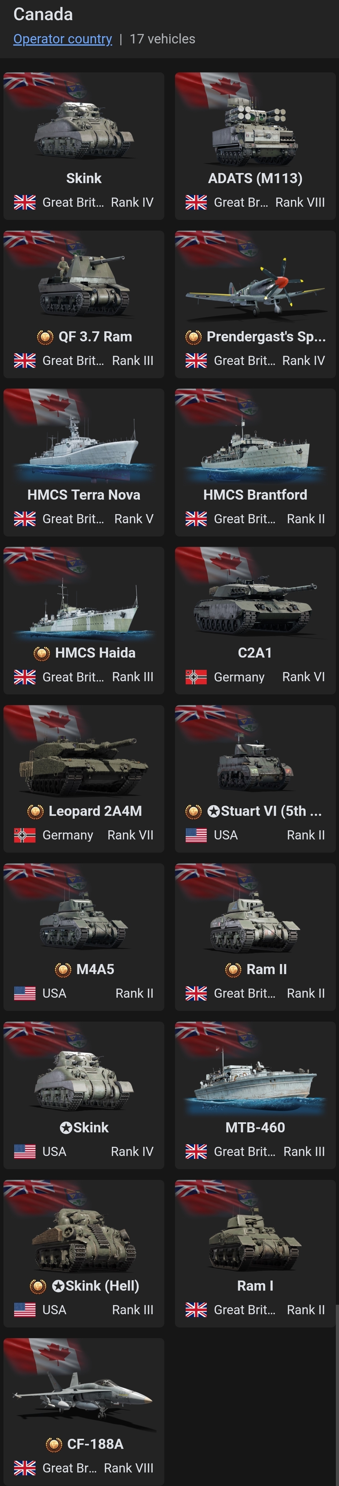 But yeah, for ground lineups, outside of the 5.3 one, you’re screwed. I have all Canadian vehicles in the UK tech tree, except for the CF-188.