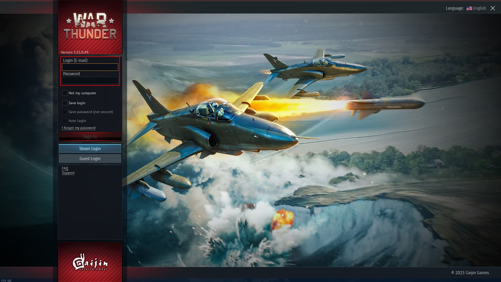 - At the log-in page you should insert your Gaijin.net account details to log-in into the game using this account; pressing Steam log-in will cause you to log-in into your automatically generated Steam account for War Thunder, which doesn’t share data, vehicles or any other in-game asset;
