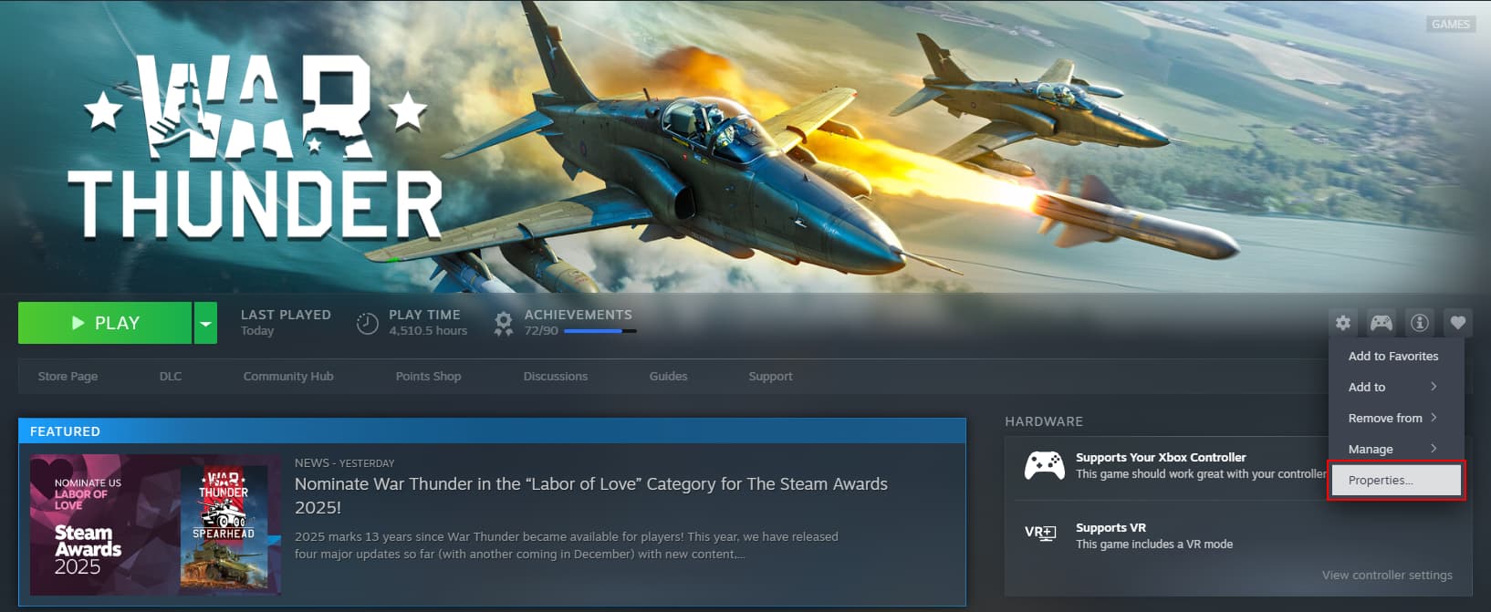 - At the game’s steam page access the “Setting” button;