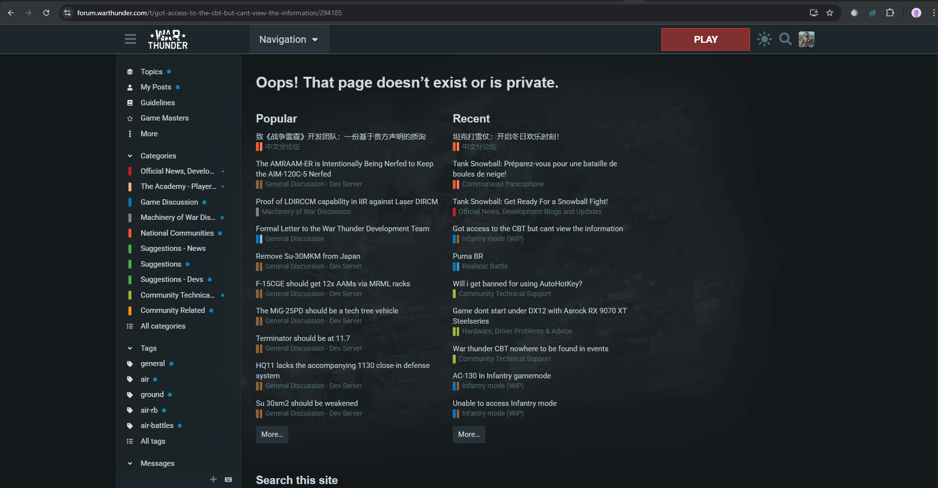 https://forum.warthunder.com/c/infantry-mode-cbt-section/141