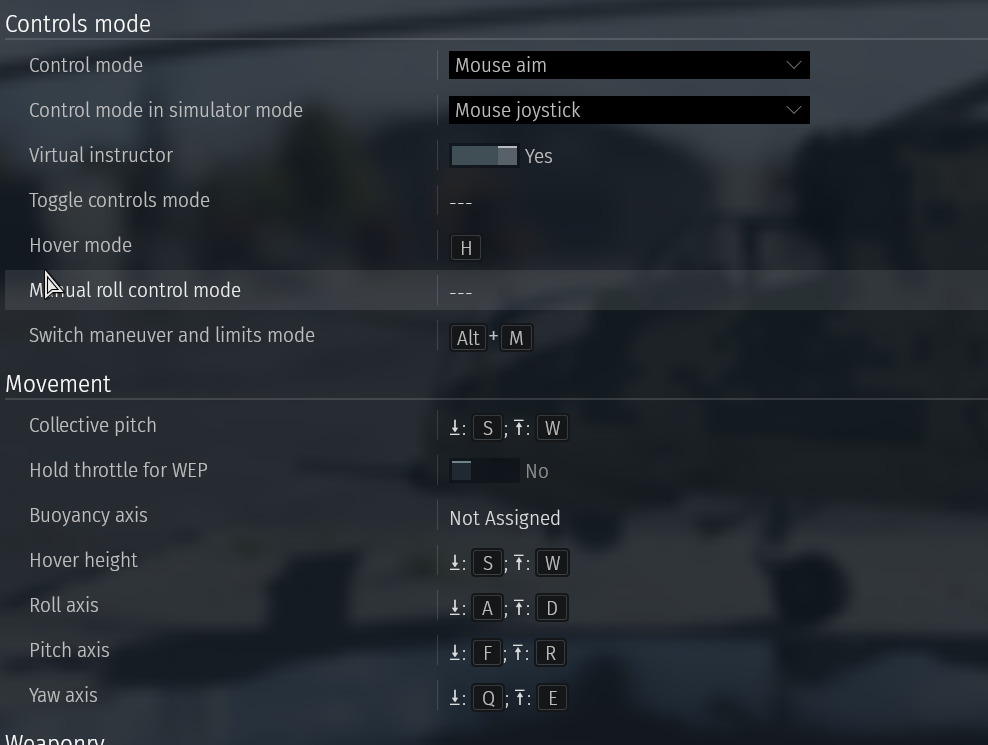 And you don’t have “S” and “W” bound to anything else than “Collective pitch” and “Hover height” in the “helicopter controls” settings or the “Common” controlls?