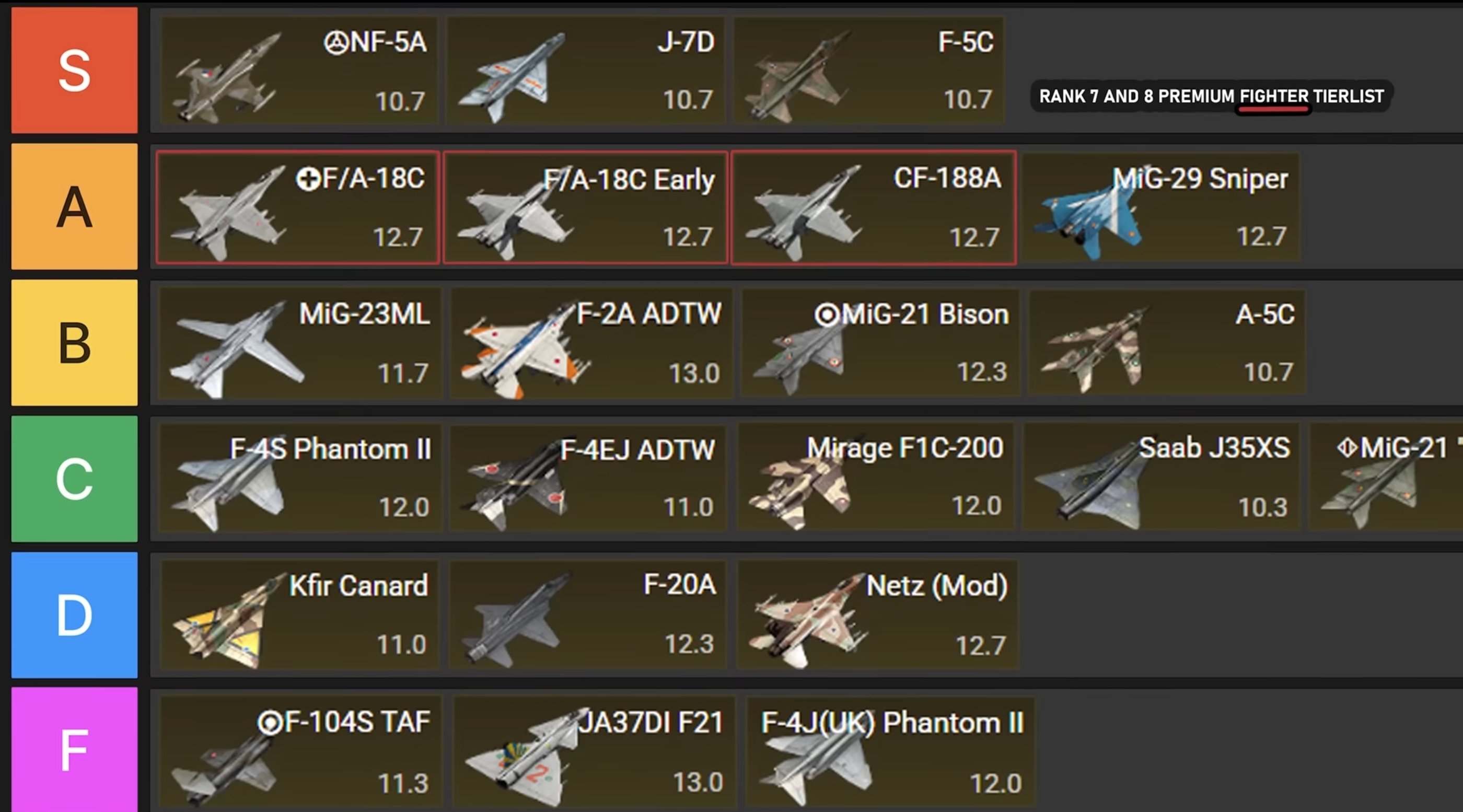 A youtuber did this tier list for high tier fighter premiums, and I gotta agree with almost all placements. The J35XS may go up to B-tier.