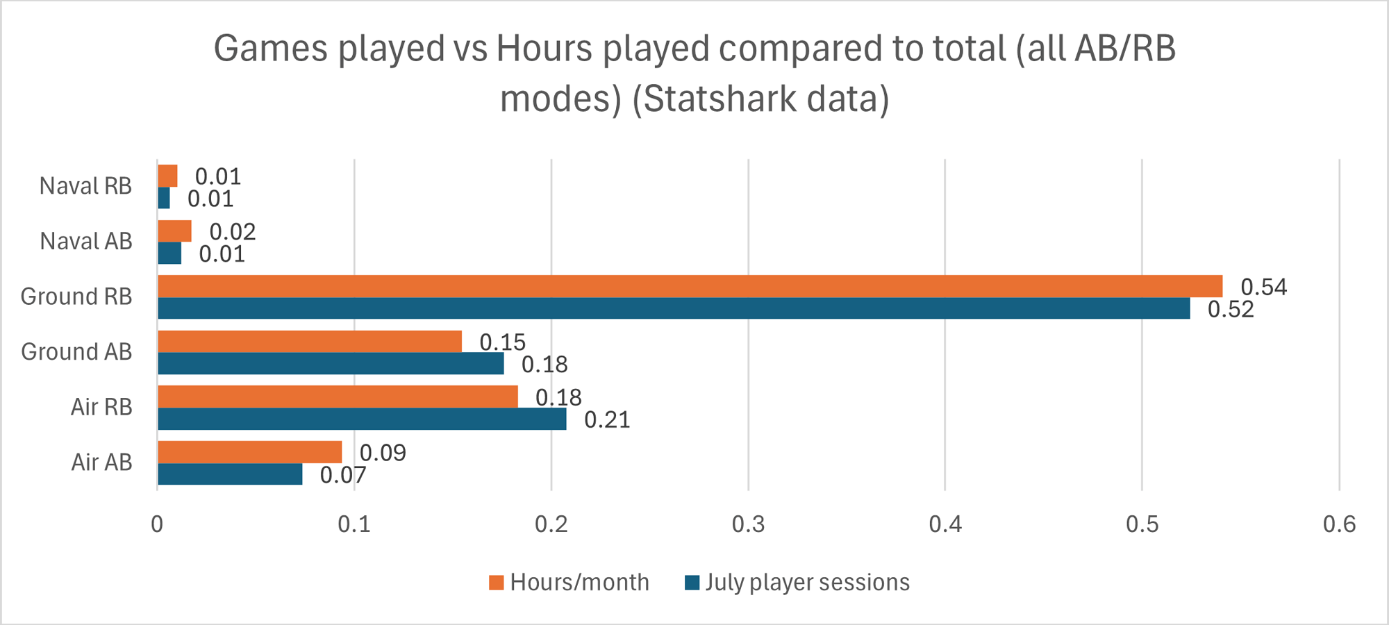 The above data, which is from July, shows that the cumulative hours played is more than 2x higher for Ground RB compared to Air RB. It probably was a more even ratio in the past, but the current ARB gameplay loop might have driven away many people.