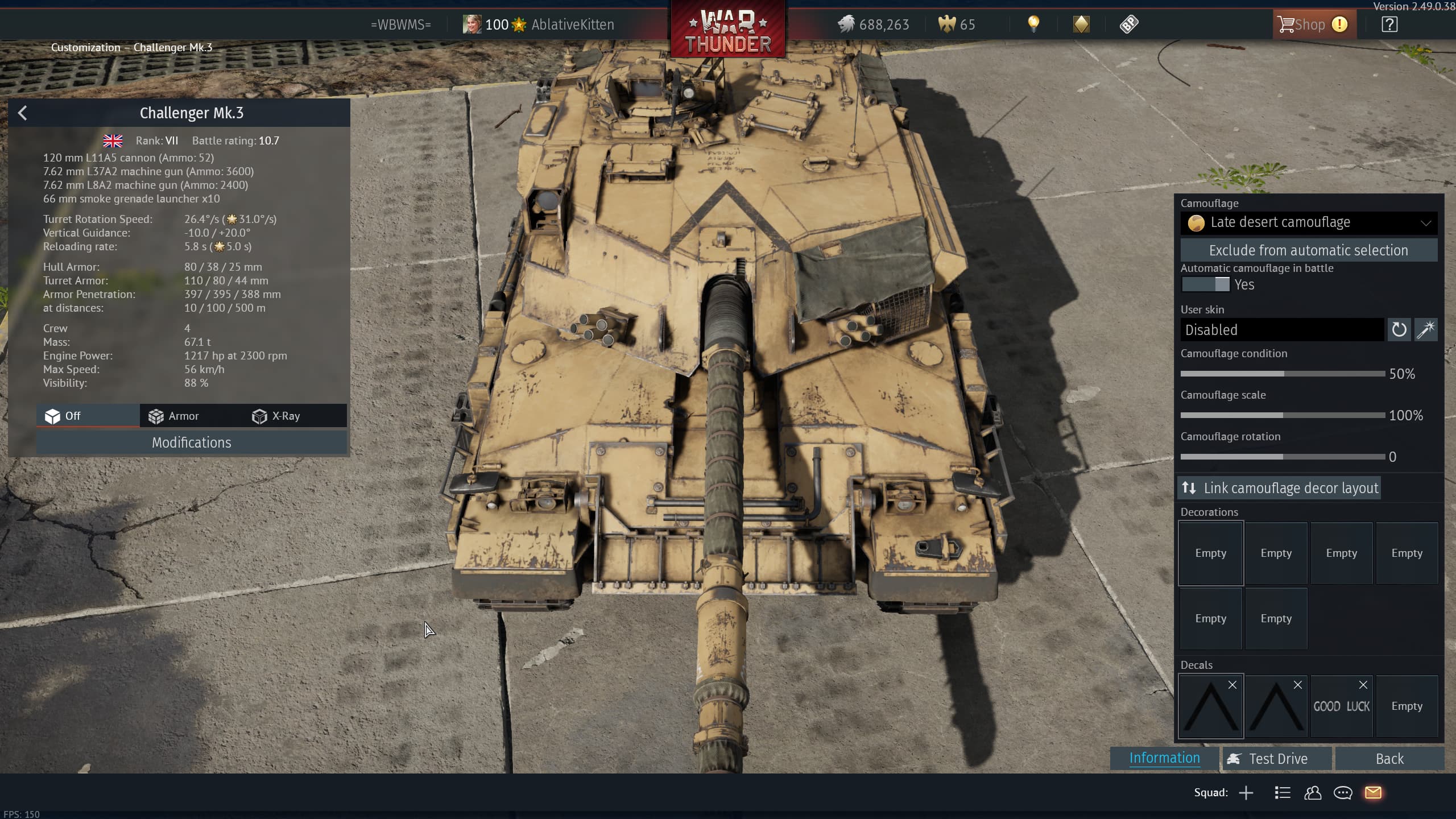 One of the worst composite armour kits on any tank in-game I’ve is the Olifant Mk.2’s and worst internal composite armour is the TTD’s. The TTD armour is equal to that of the M1A2 and Leopard 2A5 but in-game isn’t even close to a T80U