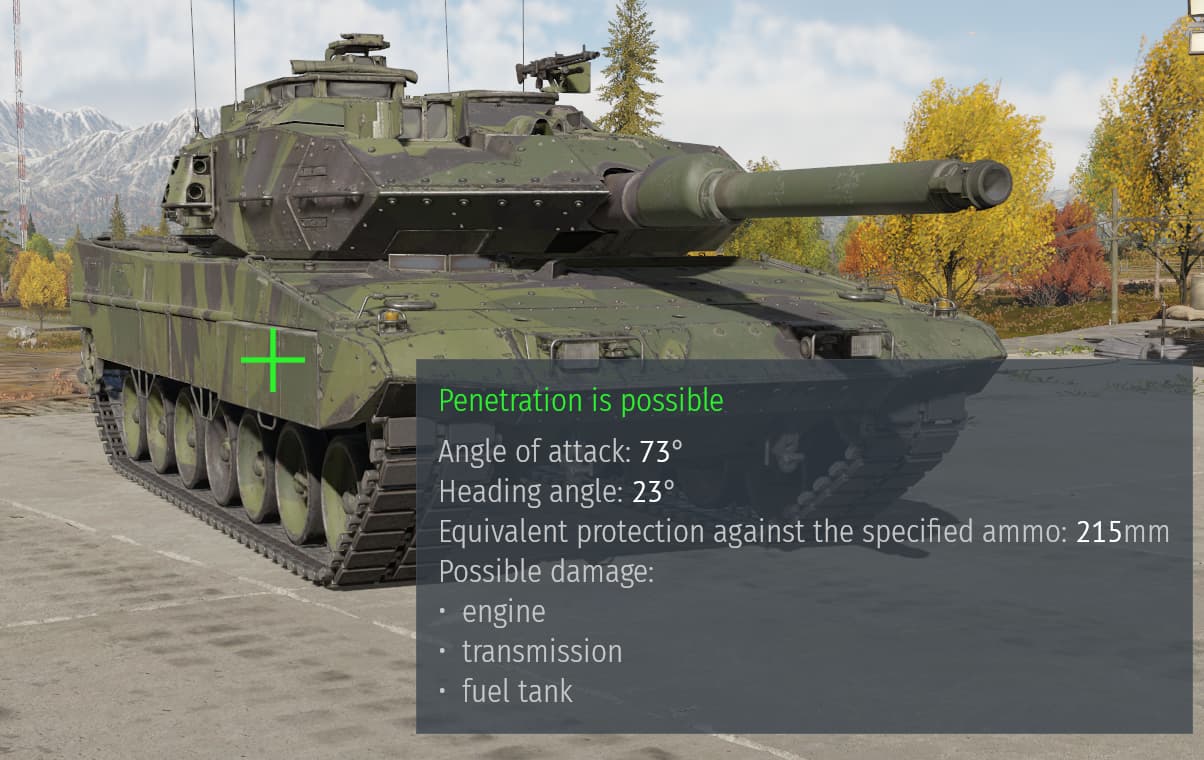For the Swedish Leopard, the side addons should provide around 700mm of KE protection at 17.5 degrees angle from the frontal arc (0 degrees). (As per shot number 5 SWE in the table)