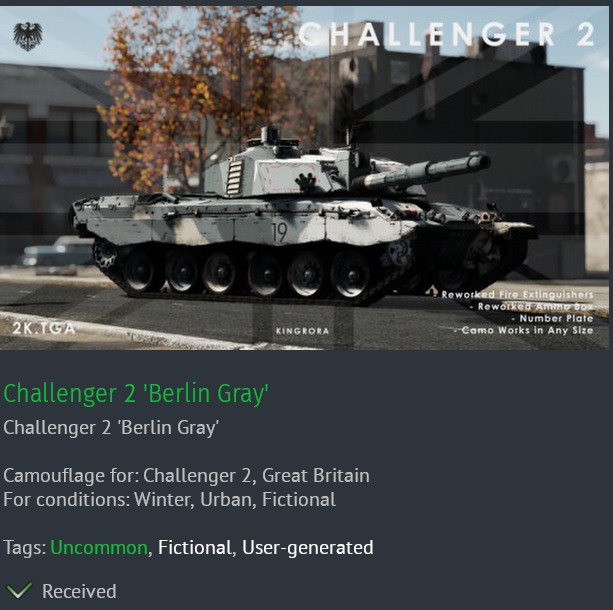 Notice more than a few times that the automatic camo selection thing fails horribly on the Challenger 2 more often than not. Its like it just picks randomly