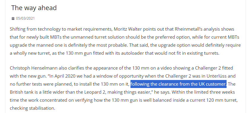 I guess this furthur backs up the Challenger 3 being able to fit a 130mm