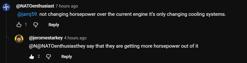 This is a misconception i think, the refreshed PP’s have more power than the older tanks because they have been refreshed, they are much more efficient than they used to be. The new torque converter and refreshed transmission may provide better delivered power. But CV12 is still running at 1200BHP.