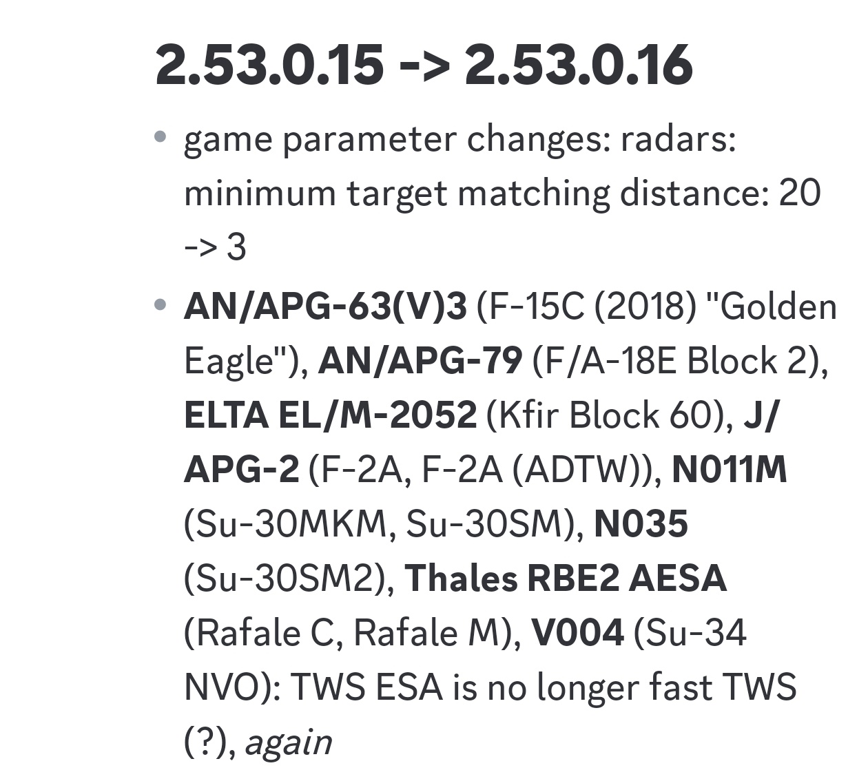 Regarding the malfunction of the J-10C’s TWS, it appears that only the J-10C has not received the fixes that other aircraft using TWSESA have received. We will use datamining as the source, but this is likely the case. Prior to this update, targets frequently disappeared from the TWS on other aircraft as well.