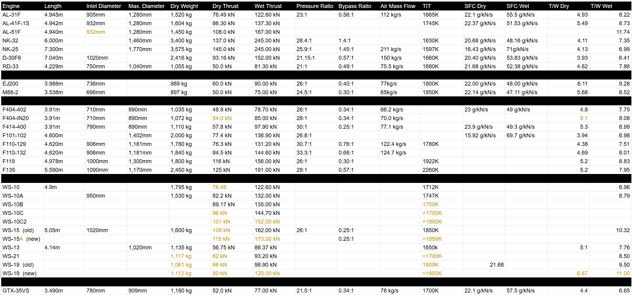 I did some research and made some calculations about the WS-10 series, and i wanted to know about the WS-10B, the thing is that if the engine T/W Wet is 8.8 the WS-10B should be weighting something like 1534 kg if we consider the actual Thrust of the engine, if we consider the 135 kn (13.765 kgf of thrust) the engine should weight 1568 kg… the thing is that gaijin take the 1795 kg of weight from the first model of the WS-10, the basic one, not even the WS-10A, the original WS-10 was more like a copy paste from the AL-31 but heavier probably because they were just starting to manufacture their own engines at that time… i wanted to talk about the internal fuel of the J-10C because it should carry 300 kg more of internal fuel than the J-10A… because when they replaced the old air inlet with the new one in the J-10B (DSI Intake), they reduced 300 kg and those 300 kg became internal fuel depending on what comes to research…