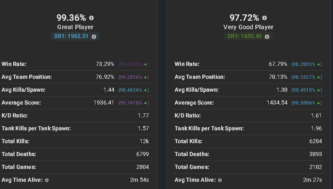 You can also review the players stat cards and review time played, KD Ratio aswell as level. When you compare these 3 to either pro players or long term players it does not add up at all as they makes the pros and vets look like beginners to this game mode.