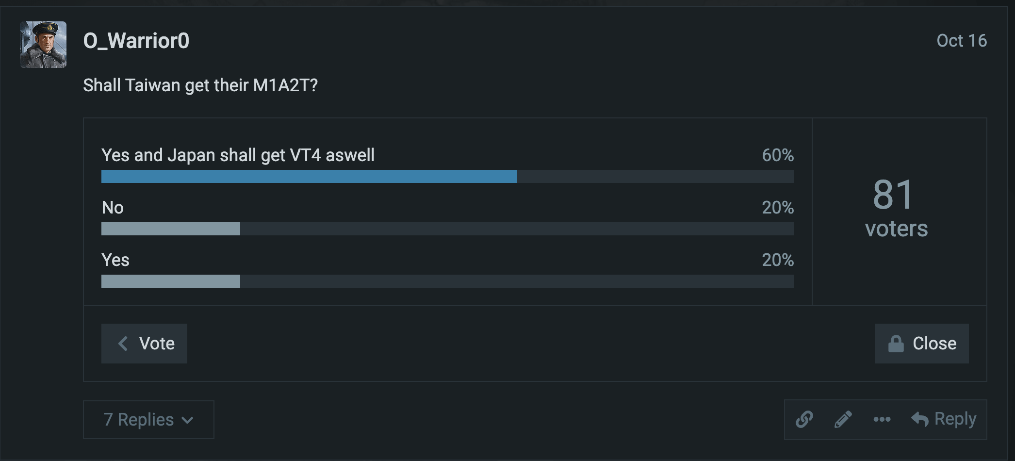 Another update of showing that the community want the VT4 and Abrams! Both shall be added to the game.