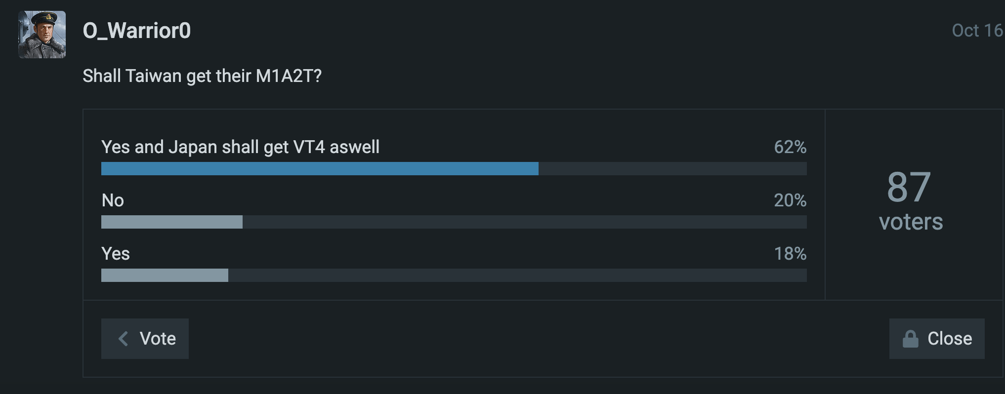 Smin’s statement here only denied the VT-4 for the Tusk Force major update, and does not exclude it from future updates. Whether it will wait for 2.51 or later is anyone’s guess.