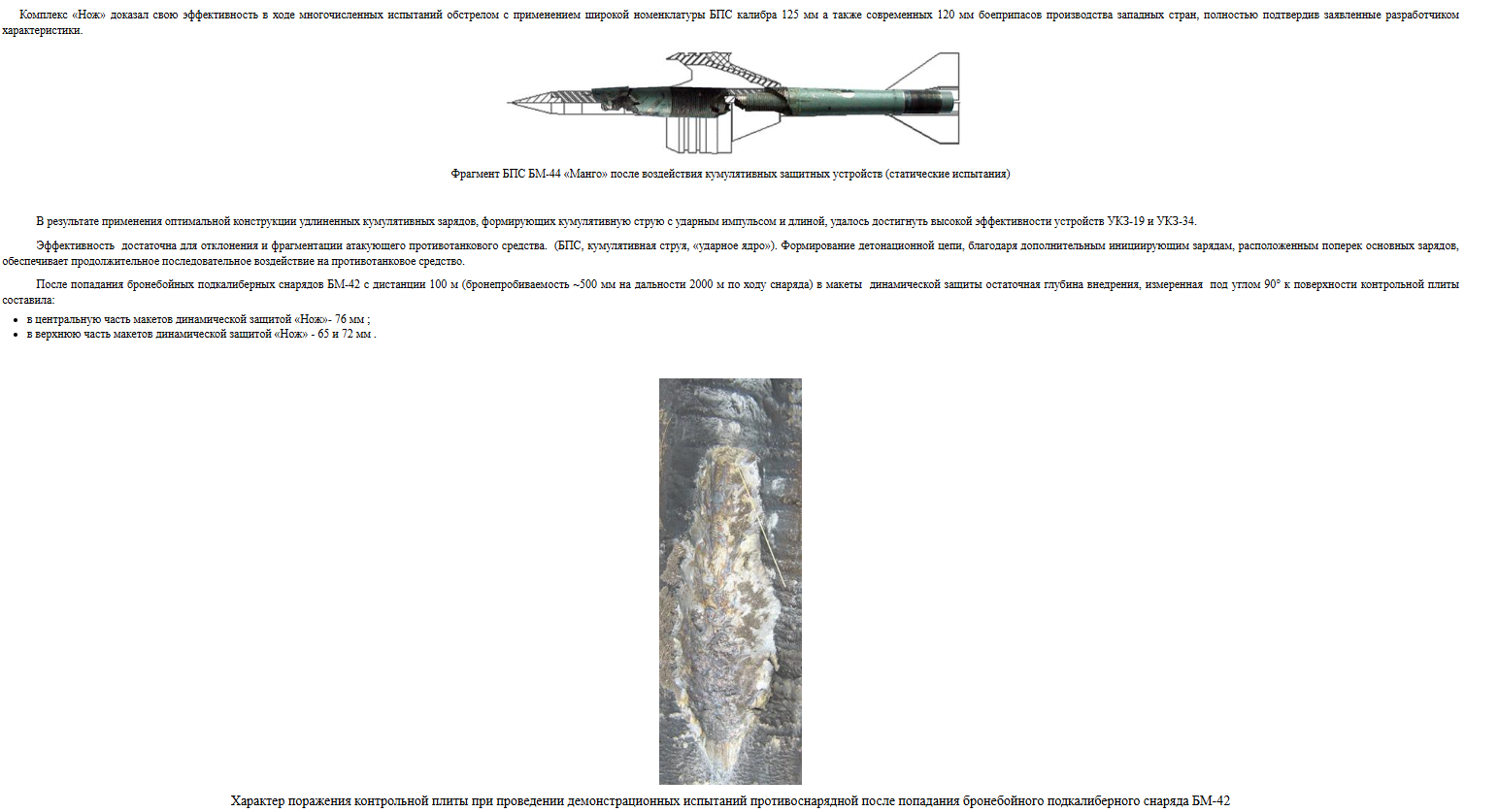 The “Nozh” system (using UKZ-19 and UKZ-34 devices) achieves high effectiveness by generating a cumulative jet with momentum and significant length. This allows it to deflect and fragment the attacking projectile (APFSDS, shaped charge jet, or “explosively formed penetrator”).