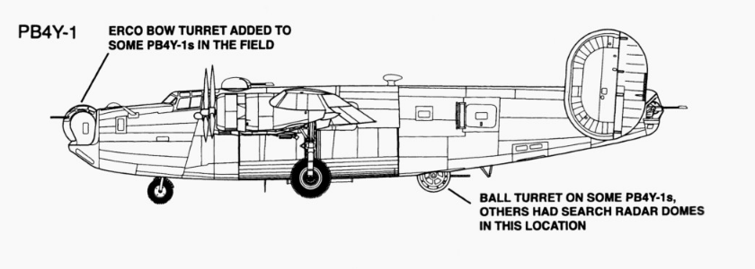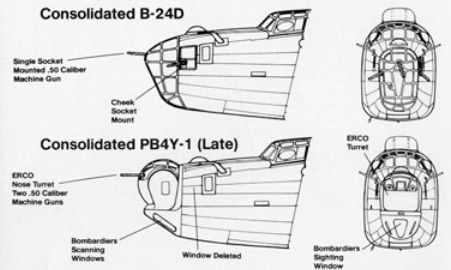 - B-24J/L/M-based PB4Y-1 (Consolidated A-6 or Emerson A-15 nose turret)
