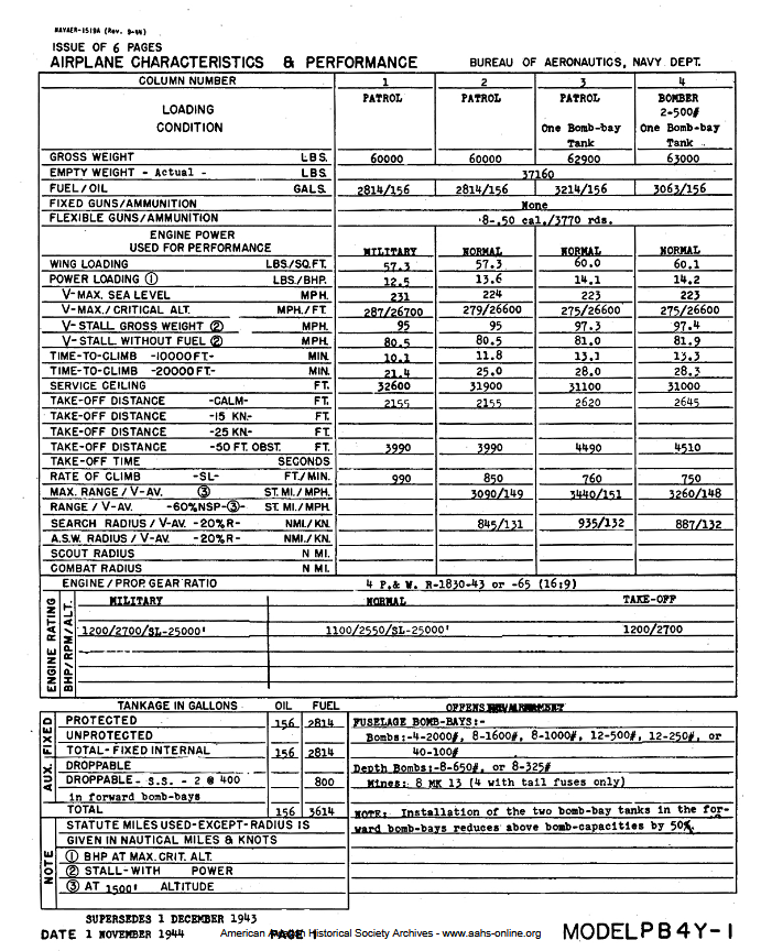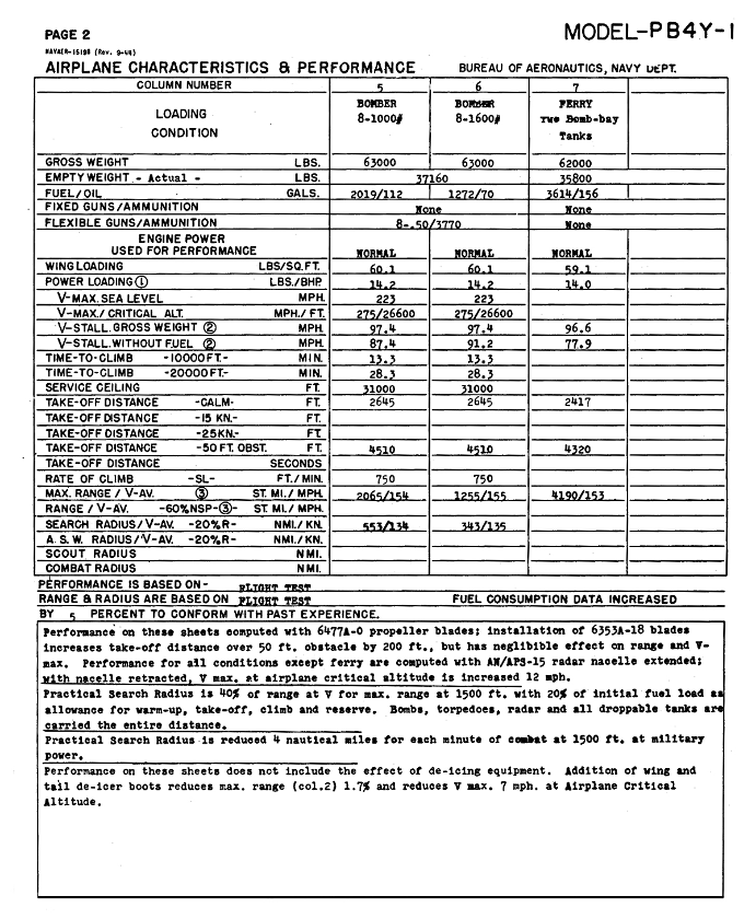 - PB4Y-1 Airplane Characteristics & Performance (1 November 1944)