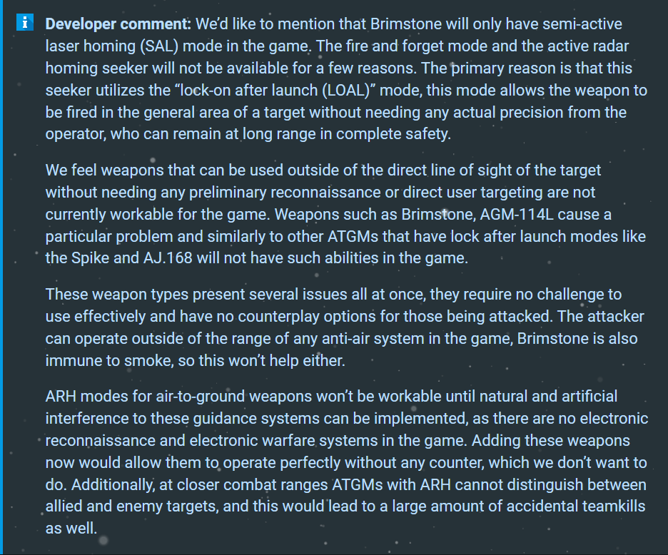 Gaijin: We gelded Brimstone with Laser-Gudiance only because it is historical. We just fried the circuit to disable MMw seeker. Because it will be OP