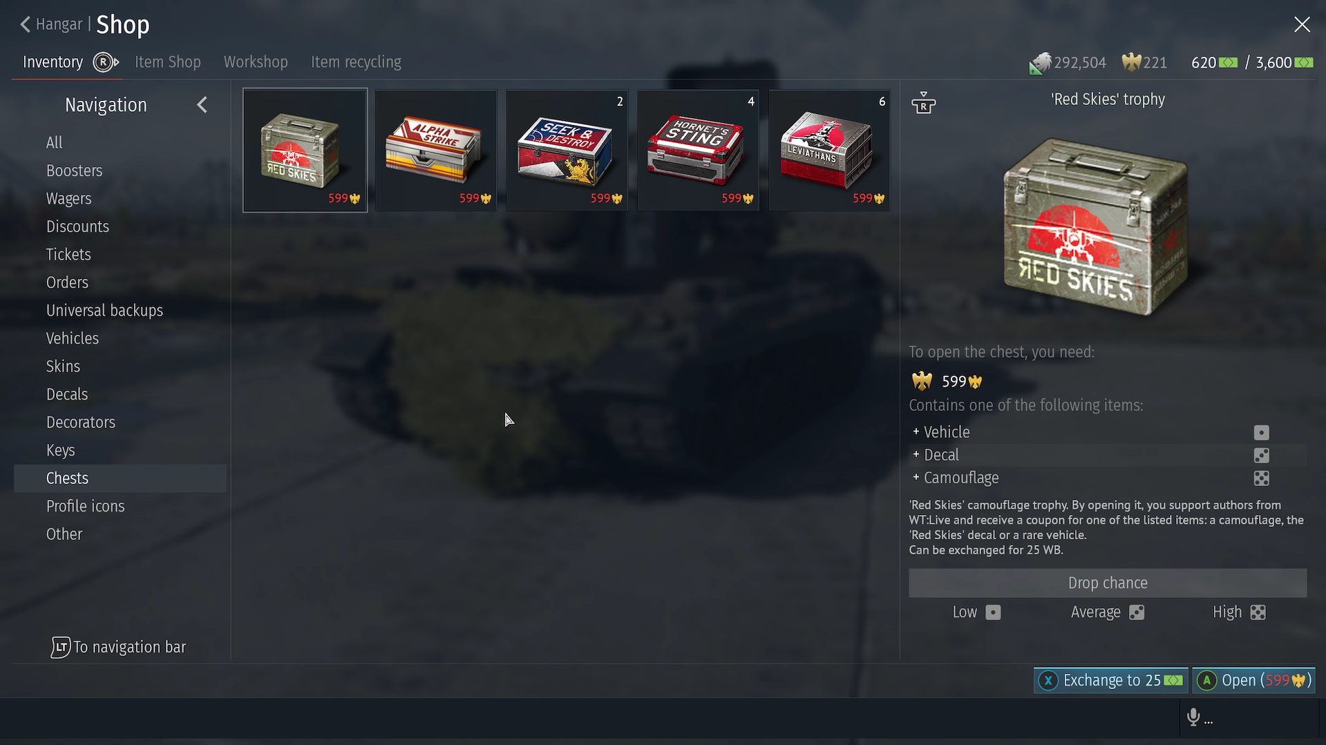 I have trophies from back during Starfighters (1.98 - For a time context, that was May 2020) that I haven’t opened because Gaijin wants to charge money to do so (I had some from 1.87, 1.89, and 1.91 [All during early-mid 2019] as well but I got rid of those at some point, and not by opening them).