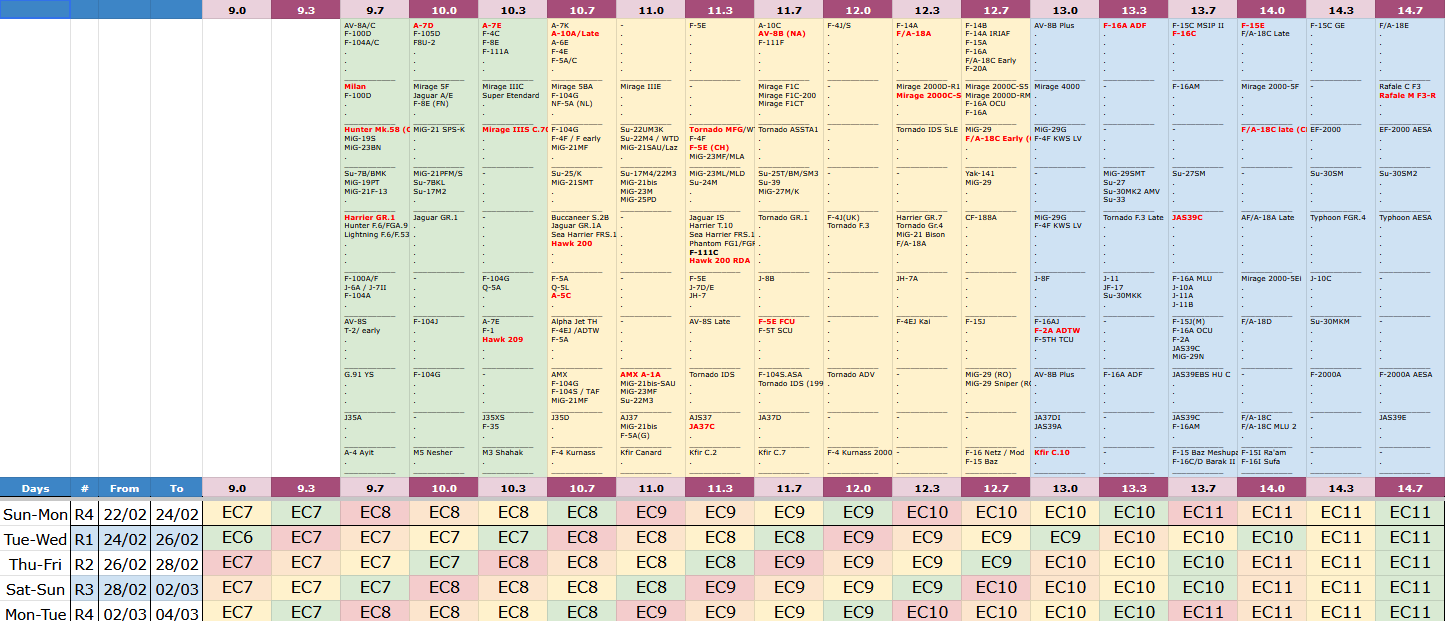 So your point is the there is no point in playing planes into tiers where they are at a disadvantage. So it makes no sense to play F18 on any days where 12.7 isn’t the top bracket etc.