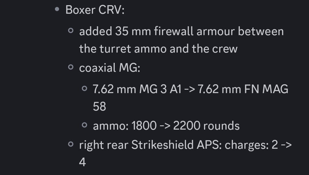 It’s a shame how the CRV boxer was treated compared to the BMPT with its low BR, I hope they fix its APS and give it more spikes, I was hoping it would perform decently so I could also see it in the German tech tree as Schwerer Waffentrager Infanterie, by the way, another interesting boxer for GB tech tree could be the “Overwatch” Boxer (this prototype has Brimstone missiles)