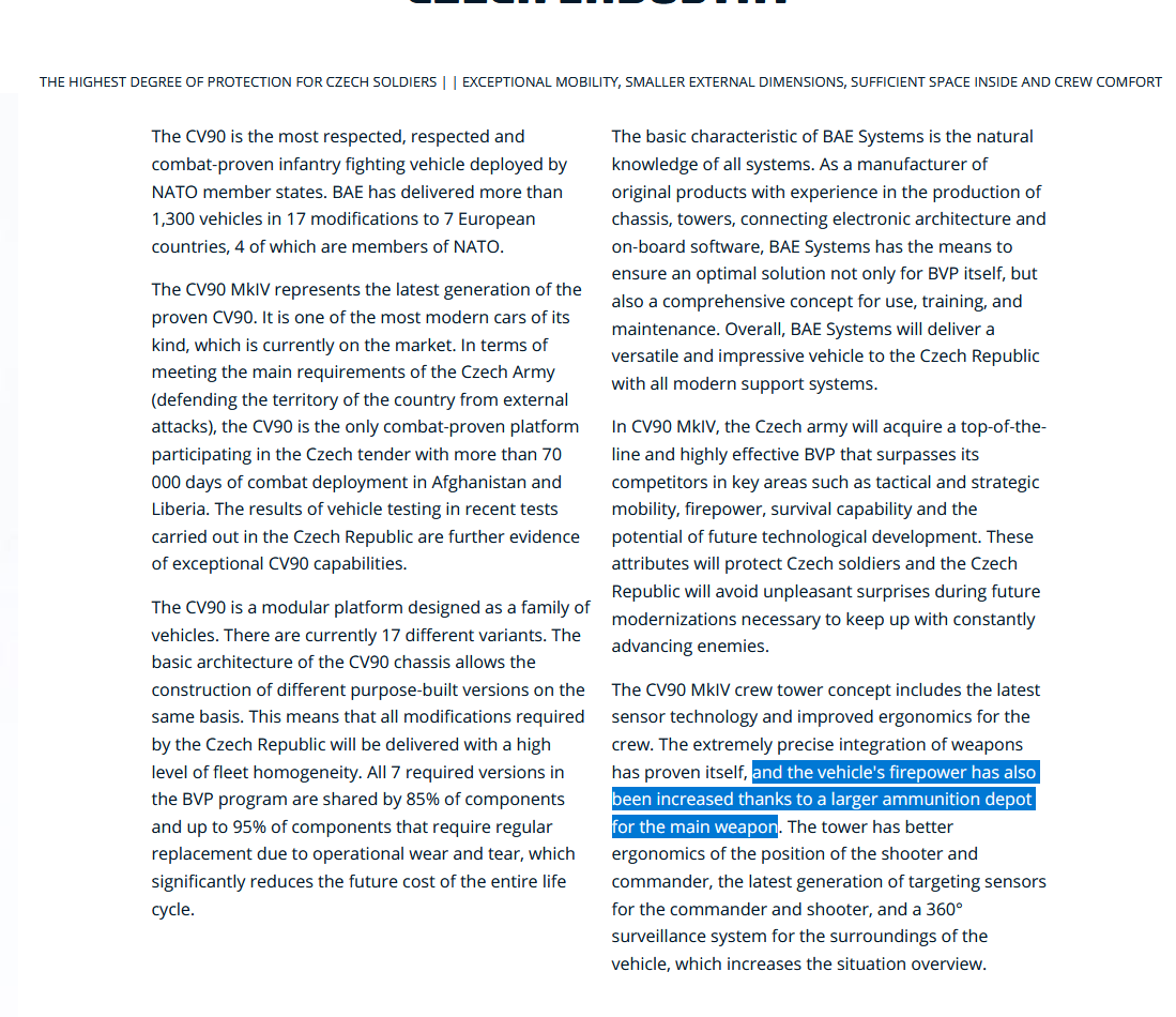 The ammo-capacity being reduced to a (already inaccurate) Strf 9040 figure is also laughable, given that BAE Systems themselves state the increase in ammunition capacity to be an upgrade the MK IV provides over its predecessors;