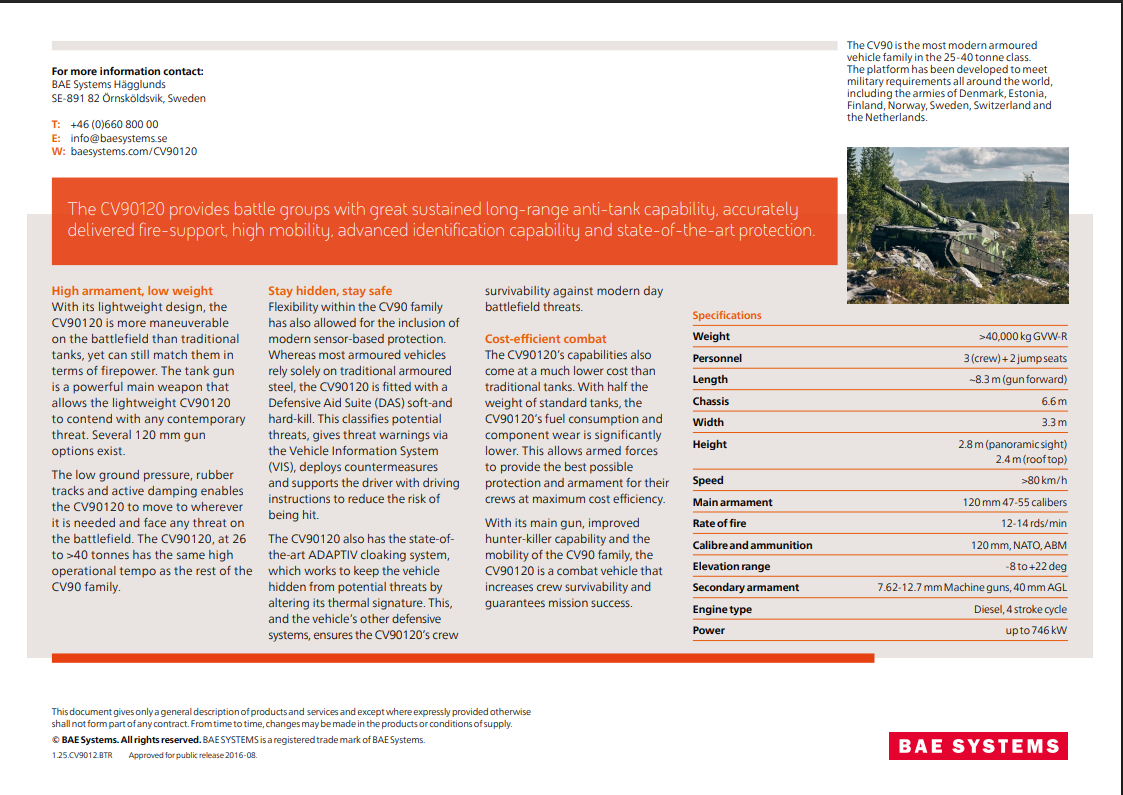 The brochure is from BAE SYSTEMS website Where you Can download it. Still the version in the brochure is the modernized 1000 hp engine with more weight, not the one ingame.