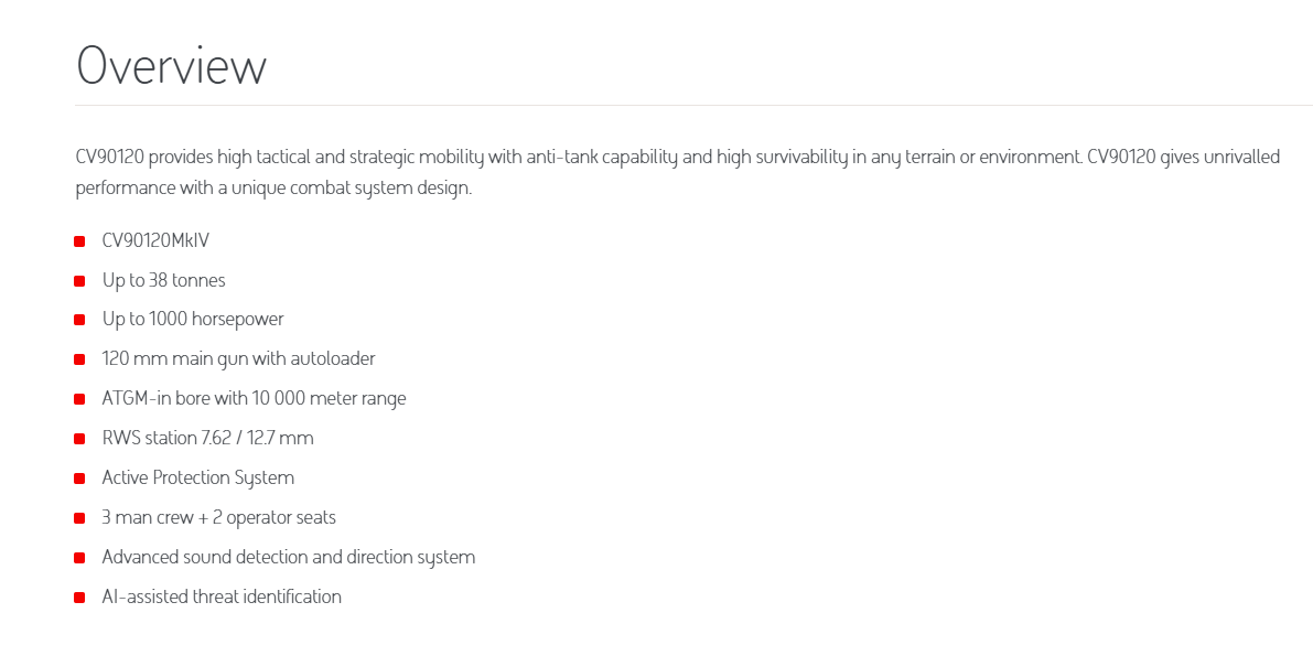 This is the “max combat loaded weight” which is UP TO 35 tonnes. However, this includes the RWS and the add on armor that are mentioned in the document as seen on the picture of the CV90120-T with the mentioned modifications. The model ingame has neither of those, therefore this weight increase in incorrect.