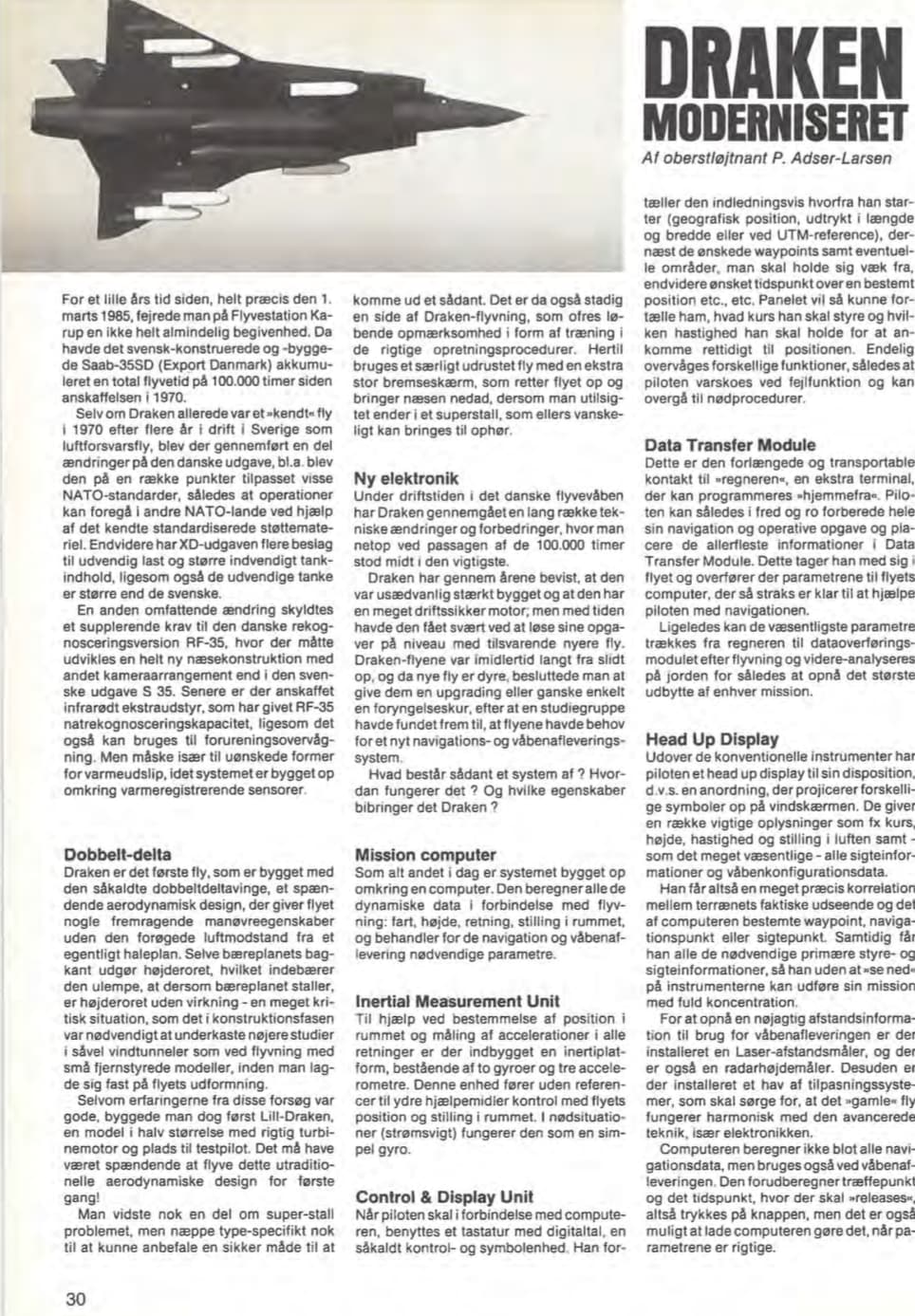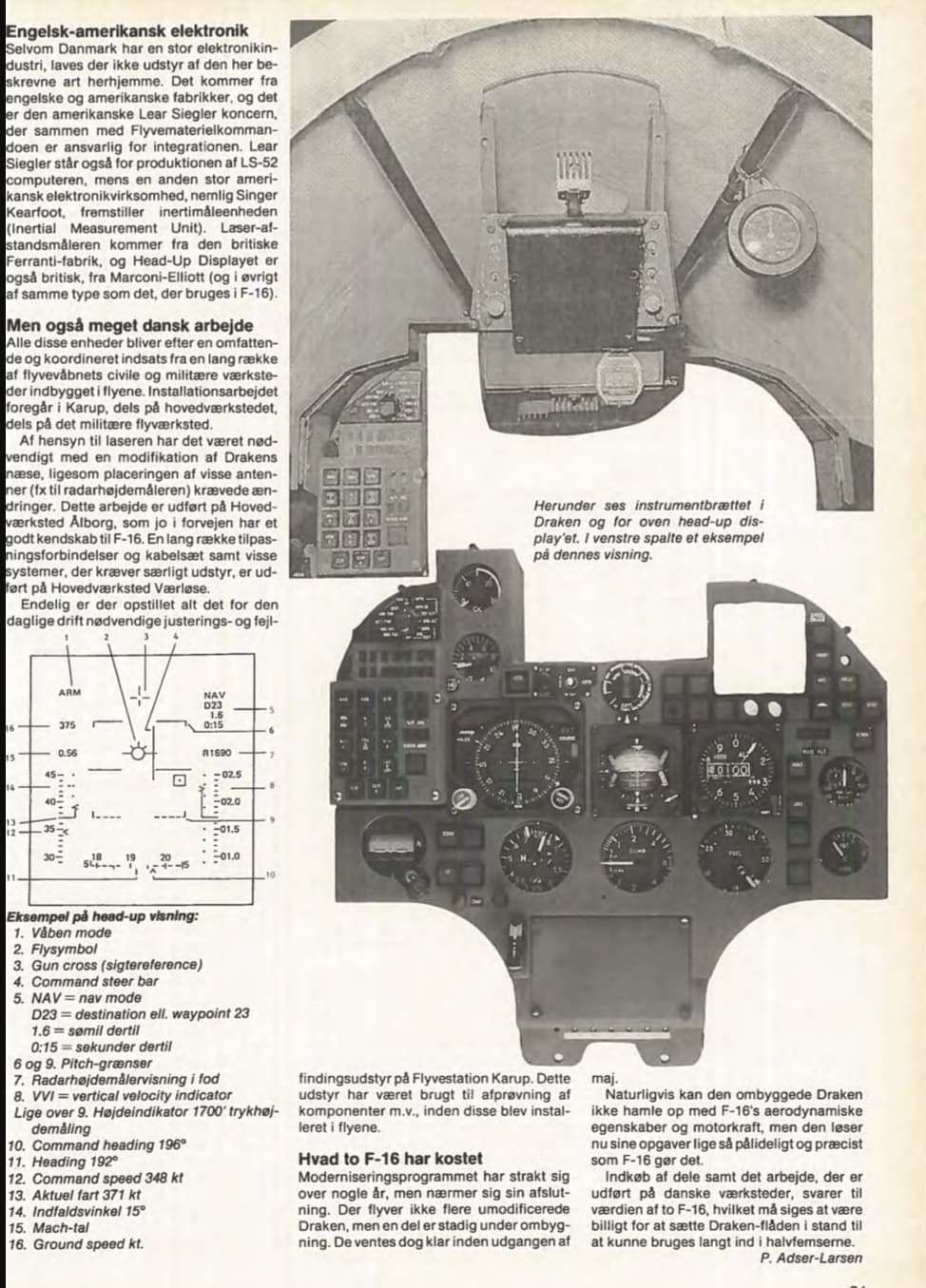 The page is a personal memoir from a former Danish Air Force officer VAD (Shortened name) reflecting on his time in the 1980s as a pilot for the RDAF.