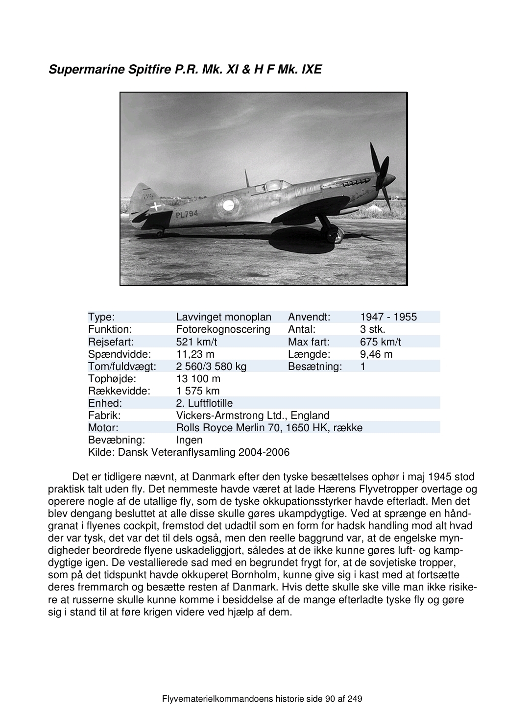 Accidents were common during this period because postwar flying in Denmark had fewer restrictions and the Spitfire itself was difficult to manage on the ground. The aircraft’s tendency to tip onto its nose led to several mishaps, and eight Mk. IXE fighters were ultimately lost, with four pilots killed. By 1951–52 most Spitfires had already been retired and scrapped, though the reconnaissance variants stayed in service slightly longer before being phased out. Many of the retured Spits are actually in a few of our Musuems and i believe 2 are privately owned and are still flying.