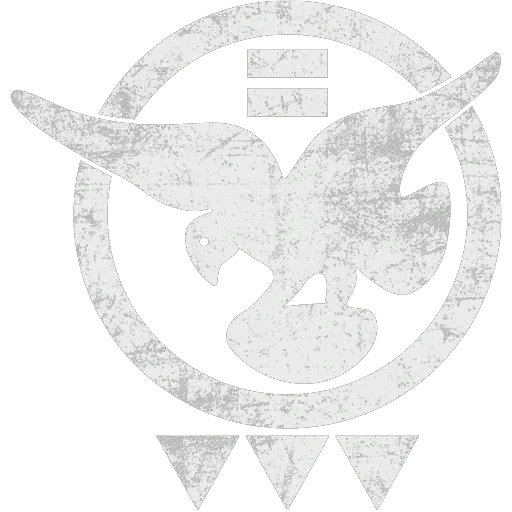 Emblème de la 8e brigade d’artillerie automotrice, 2e bataillon, 3e batterie, URSS. Les représentations du marquage sont souvent vagues, difficile de savoir ce que l’oiseau tient (obus ou pierre). Certains oiseaux de l’URSS cassent leur nourriture en lâchant des pierres, ce qui pourrait expliquer l’emblème. Les deux bandes au-dessus indiquent le 2e bataillon, les trois flèches le 3e batterie. Marquage vu surtout sur les SU-76, à l’arrière ou sur le compartiment d’équipage.
