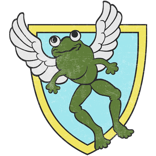 Emblème du Wettererkundungsstaffel (escadrille de reconnaissance météo) 5, Luftwaffe. Formée en mai 1940 à Trondheim, Norvège, sous la Luftflotte 5. Les vols de reconnaissance météo étaient essentiels, chaque jour l’équipage recueillait des données pour l’aviation. L’équipage était généralement réduit à un pilote, un radio, un mécanicien (aussi tireur) et un expert météo. L’emblème humoristique représente un “Wetterfrosch” (grenouille météo), créature du folklore allemand censée prédire le temps. On croyait que la grenouille montait si le temps allait s’améliorer et descendait s’il allait pleuvoir, mais ce comportement était en fait réactif et non prédictif. Beaucoup gardaient ces grenouilles dans des bocaux, pensant qu’elles étaient des baromètres vivants. L’escadrille utilisait notamment les Ju 88, He 111 et Do 17, l’emblème étant souvent peint près du cockpit.