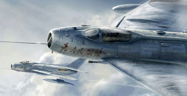 “Serving the People” (为人民服务) inscription, PLANAF. The personal inscription of pilot Lü Jiliang (吕纪良), who flew with the 6th Fighter Division during the 1960s. Slogans like this were especially common at the time, often portraying sentiments of loyalty, spirit and dedication. Lü Jiliang scored a shared victory against an F-4 Phantom that entered restricted airspace in 1967, with both Phantom pilots bailing out safely after the fight. As was typical with similar inscriptions, he displayed the marking prominently on the nose of his J-6 fighter.