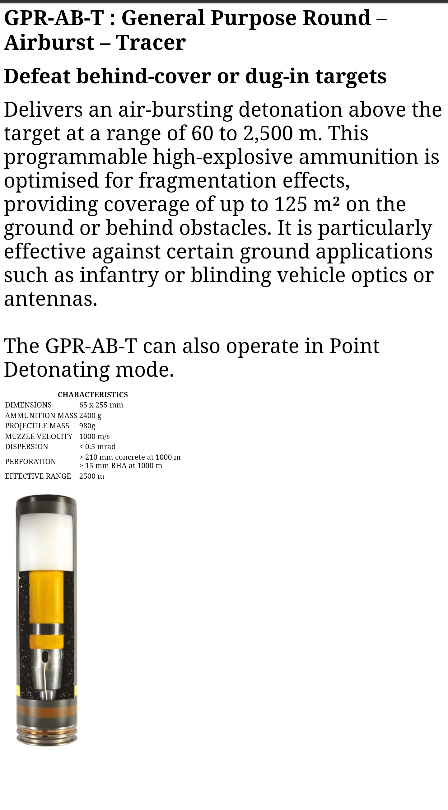 The AHEAD is the KE-AB. It’s programmed to explode at a certain distance when exiting the cannon. The GPR-AB-R works with a proximity fuse. It’s different from AHEAD as it will explode only when detecting the target with its debris. Overall, from my testings, I find the KE-AB far more reliable