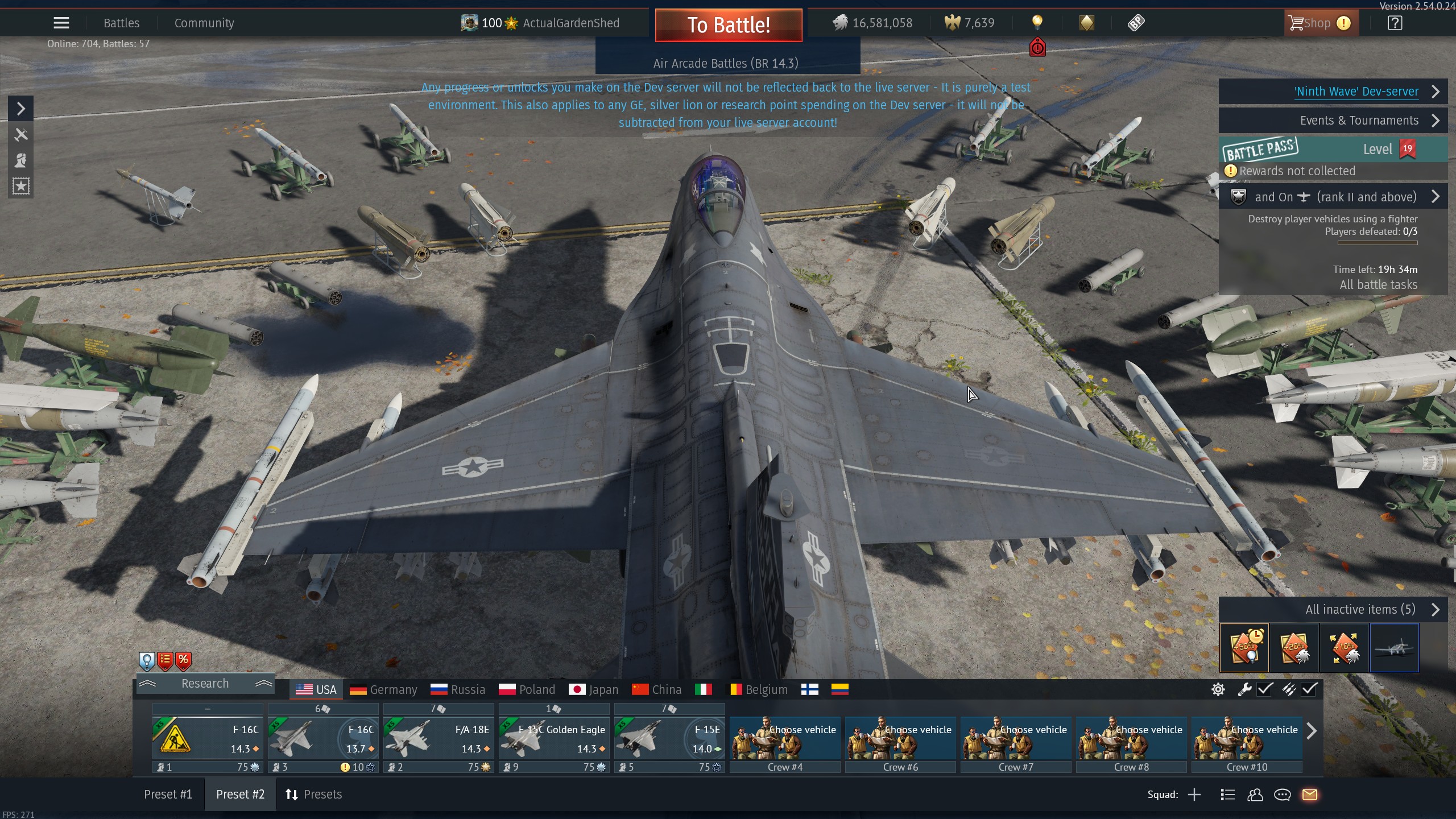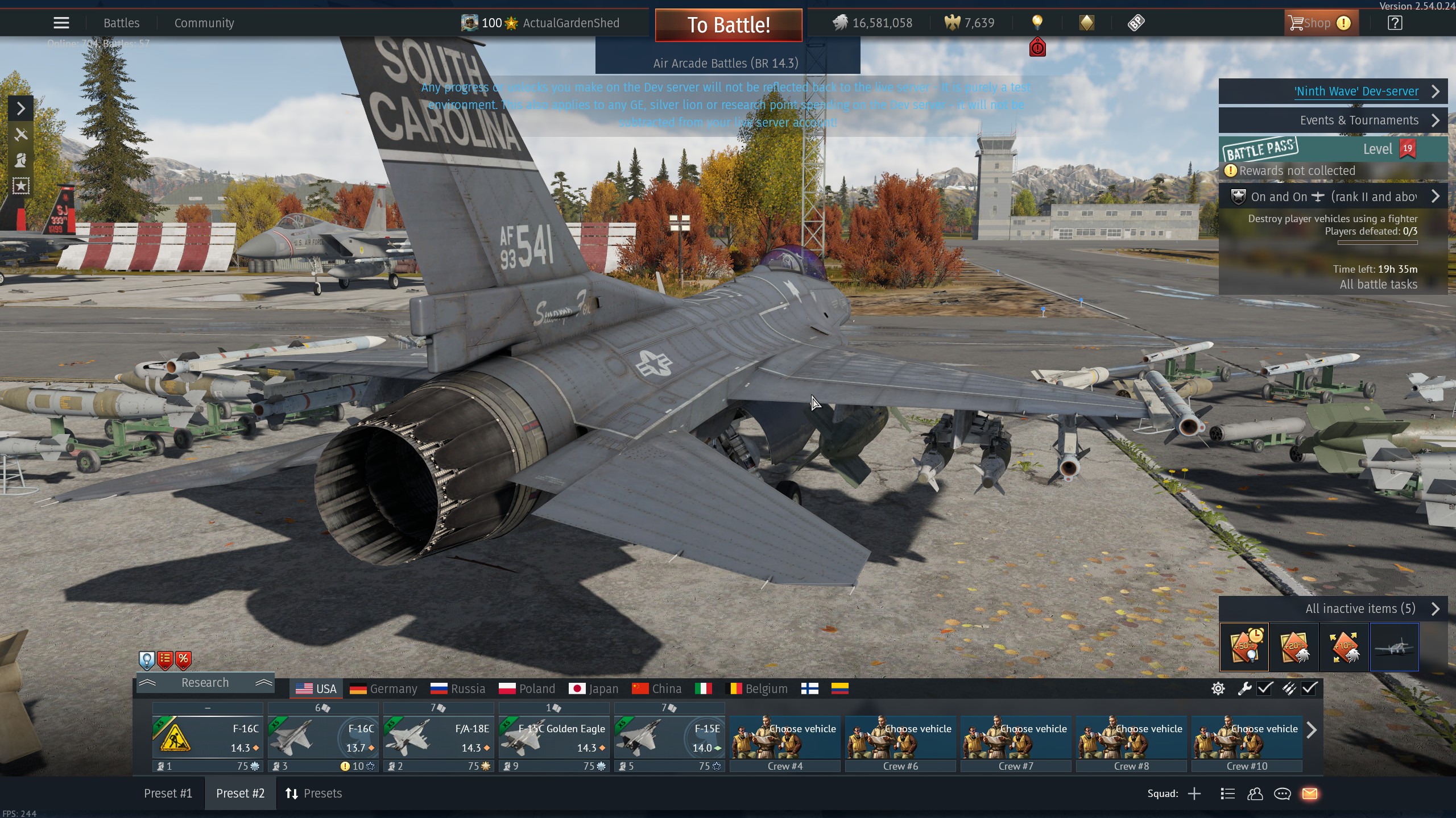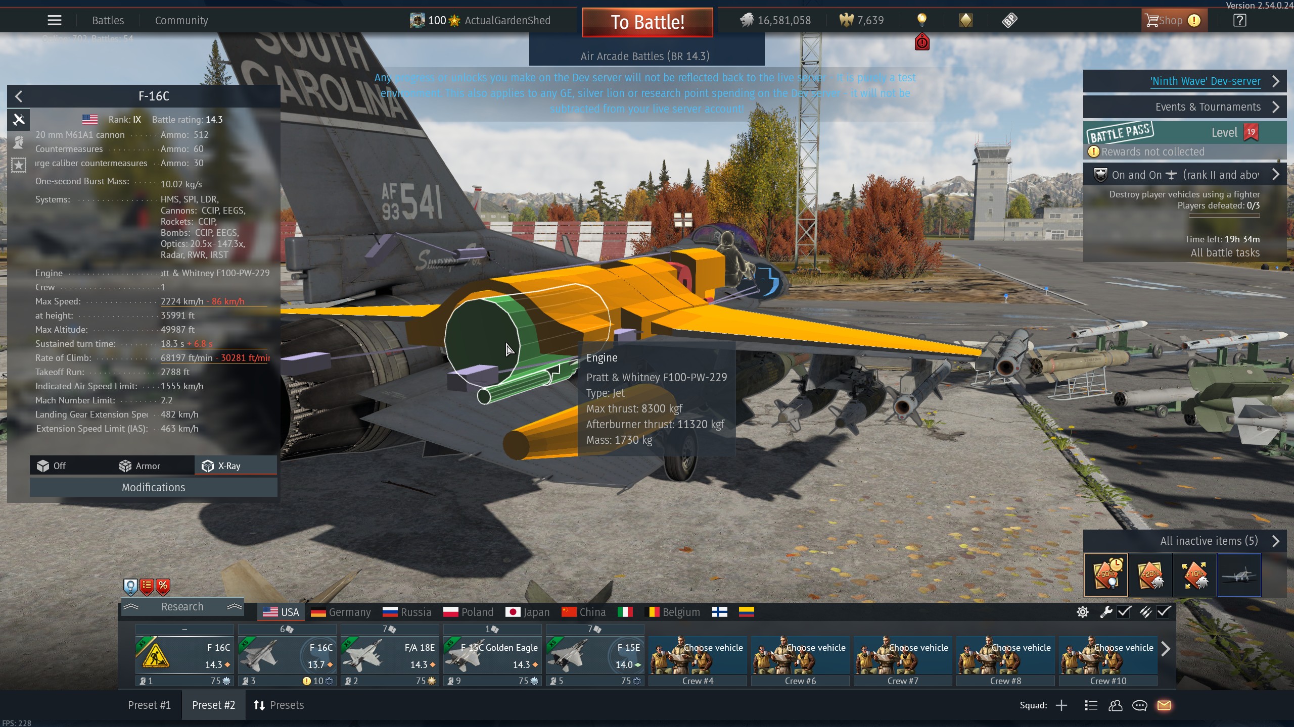 Dev Server Updated appears they fixed the canopy texture as well as the nozzle texture and both USAF roundels appearing on the top of the wings. Appears the thrust on the engine has changed as well from what the SUFA has now on live of 10350 kgf in afterburner to 11320 kgf. I do not know if this number in the x-ray was wrong on the SUFA and it already had that or they are increasing the thrust of the F100-PW-229 on the dev server.