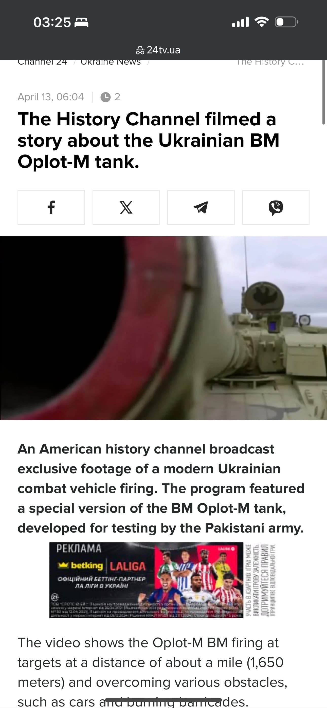 Not sure if such sources accepted but here is major TV/News agency covering this: History Channel снял сюжет об украинском танке БМ "Оплот-М" - 24 Канал
