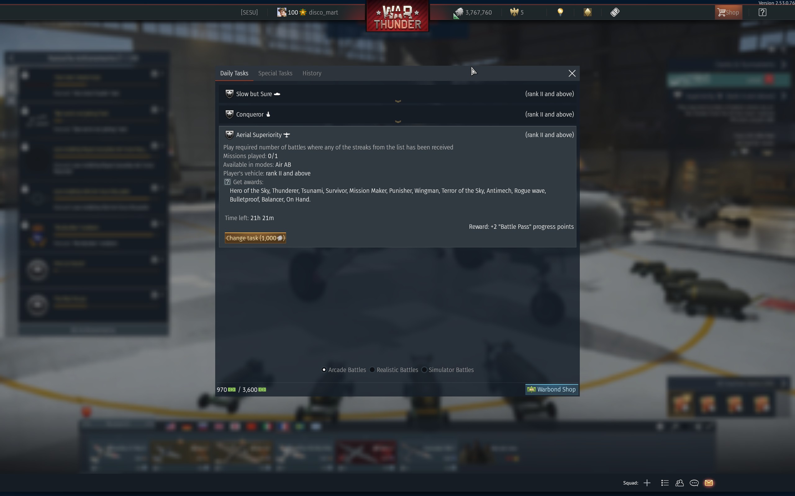 Just finished a mission. I was just awarded Thunderer for daily task but not showing as completed plus you can see my plane not fixing.